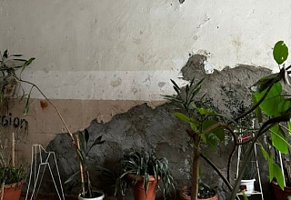 КП-Екатеринбург», один из корпусов, где проживают дети, находится в аварийном состоянии. На снимках видно, что одну из стен недавно замуровали цементом, вероятно, в месте трещины. Также видны облупившаяся краска, различные граффити и отвалившаяся штукатурка. Отмечается, что двери и пол также нуждаются в ремонте.