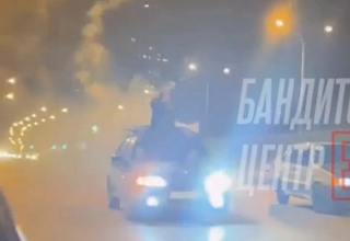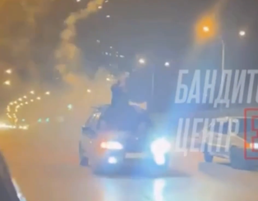 В Екатеринбурге произошел инцидент, который граничил с опасной игрой на дороге. По Московской улице парень внезапно залез на лобовое стекло легковой машины и начал запускать пиротехнику.